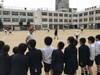 写真は運動クラブを見学している様子です。3年生はどのクラブも興味を持って見学していました。