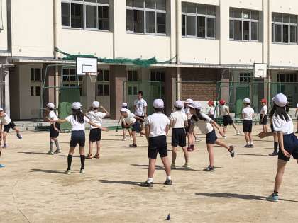 5月14日、小学生運動能力向上事業の一環として、講師を招いて短距離走・ソフトボール投げを教えてもらいました。例年より、気温が高い日でしたが子どもたちは真剣なまなざしで取り組んでいました。