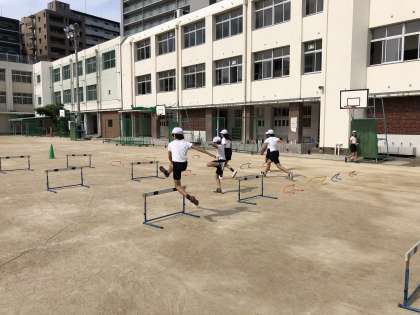 6月4日、小学生運動能力向上事業(ハードル)が行われました。全学年一時間ずつハードルに関して、飛び方の姿勢やうまく飛ぶコツを教えてもらいました。かなり暑い日でしたが、みんな頑張って学習していました。