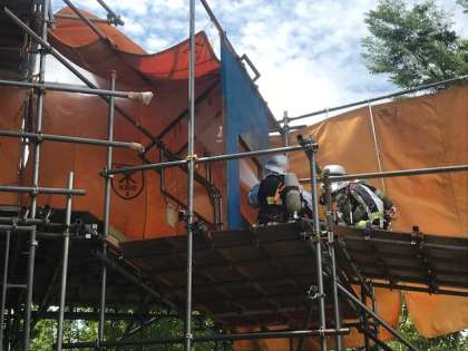 幸運にも年1回の消防訓練大会の様子を少しですが見学することができました。
