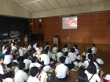 訓練の様子を見学した後、3階の講堂で大阪市消防局のDVDを見ました。