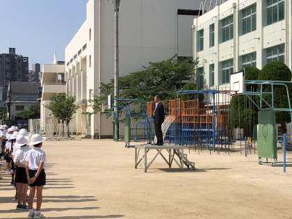 7月2日(月)、児童朝会がありました。7月に入り暑さも夏本番になってきているので、水分をしっかりとって熱中症等には十分気を付けるよう校長先生からお話がありました。