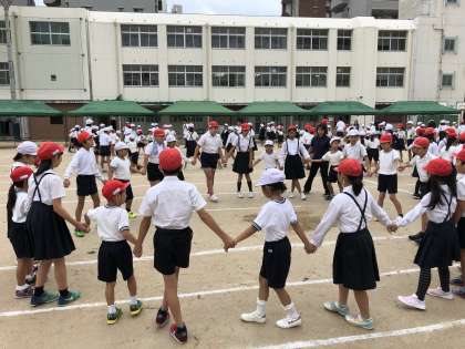 9月27日(木) 本日の児童集会は二回目のフォークダンス練習を行いました。前回で踊り方はマスターしているので、どのファミリーもしっかり踊ることができていました。