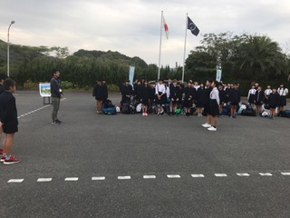 国立淡路青少年交流の家に到着後、お世話になる交流の家の職員の方と入所式を行いました。