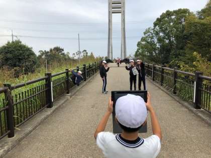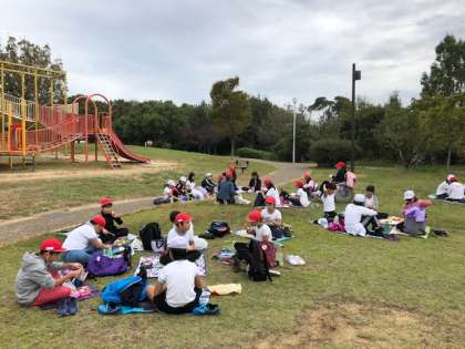 10月23日(火)5年生の秋の遠足で山田池公園に行ってきました。とても過ごしやすい気温で子どもたちも楽しんでオリエンテーリングに参加していました。内容はあらかじめポイントごとで撮った写真のポーズをまねて、自分たちでアレンジするものでした。グループによっていろんな写真の撮り方があって、面白い写真ばかりでした。