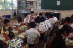 7月25日(金)の午前中、本校で「都島区食育展」が開催されました。「食育」についての展示と学校給食の新しいメニューの試食がありました。暑い中でしたが、都島区内の全小学校より、保護者や給食関係の職員が集まり実施されました。