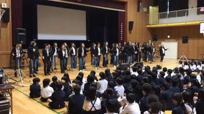 human noteは、「『ウタのチカラ』で世界の人々を幸せにする!」をコンセプトに、被災地支援や海外訪問などの活動をされている団体です。本校の保護者の中に参加されている方がいて、そのご縁で今回のコンサート開催が実現したそうです。