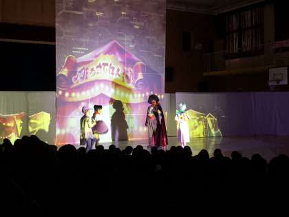 12月12日(水)11:00から劇鑑賞で、「マグナと不思議の少女」を観ました。1時間ほどの劇で、とても盛り上がりました。終わってからも、内容について話していたり、かなり入り込んで鑑賞していたように思います。