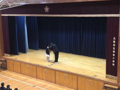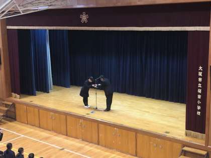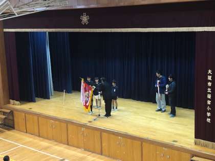 12/17(月) 本日は、雨で運動場が濡れているため、講堂での朝会でした。まずは表彰です。なんと、4つの表彰が行われました。内容は野球、なわとびギネス、テコンドーと読書感想文です。野球チームは全82チーム中の優勝という非常に素晴らしい結果でした。