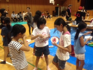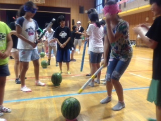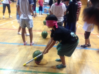 桜宮連合のみなさんから、スイカをいただきました。まず、みんなでスイカたたき(割っていません)で楽しんだ後、おいしくいただきました。