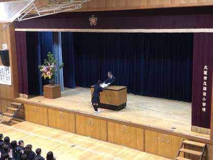 3月22日(金)は、今年度の修了式でした。1年生の発表では素敵なダンスをみせてくれました。そして、5年生の代表の児童に修了証が授与されました。