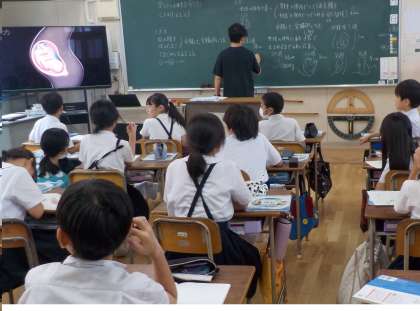 理科の学習では、『メダカの成長』に続き、『ヒトの誕生』の学習が始まりました。ヒトの成長過程についての動画を見たり絵を書いたりして、様々な質問をしながら興味を持って学習できました!メダカの赤ちゃんの成長も見守りながら、命の大切さを感じている子どもたちです。