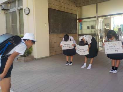 今週と来週はあいさつ週間です。今日からの4日間は代表委員会さんが門の前に立ち、あいさつ運動をしています。みなさん「気持ちの良いあいさつ」はできていますか?相手の目を見て大きな声であいさつをしましょう!朝のあいさつをしっかりとして、素晴らしい1日をスタートさせましょう!