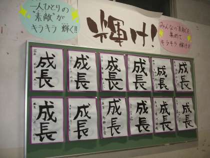 今日の習字の学習では、毛筆で「成長」に取り組みました。