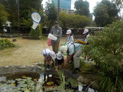 学校でもこんなにもたくさんの生き物がいることに気づくことができ、子どもたちも目を輝かせながら生き物を見つけていました。