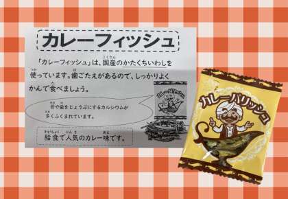 「カレーフィッシュ」は、国産のかたくちいわしを使っています。歯ごたえがあるため、咀嚼回数が増え口周りの筋肉を発達させるのを助けます。また、骨ごと食べることができるため、カルシウムもとることができます。