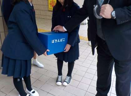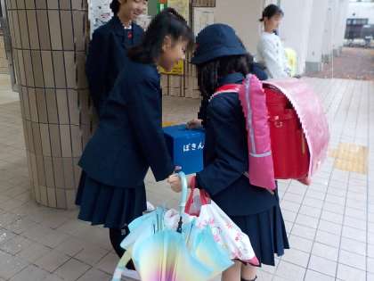 ユニセフ週間が始まりました。今日から玄関前で募金活動を行っています。募金袋がなくても募金はできます。皆さんの優しい心を世界に届けていきましょう!