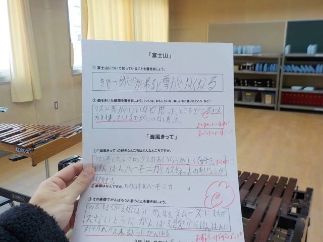 3年1組の音楽科のようすです。久しぶりの音楽科です!鑑賞の時間には『ふじ山』などを聴いて感じたことを表現しました。感じ方は人それぞれですね!!!