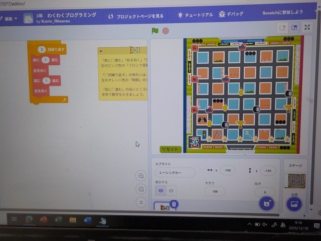 算数科ではプログラミングの学習をしました。車を動かすプログラムをみんなで考えました。こういった思考力も大切ですね!!!