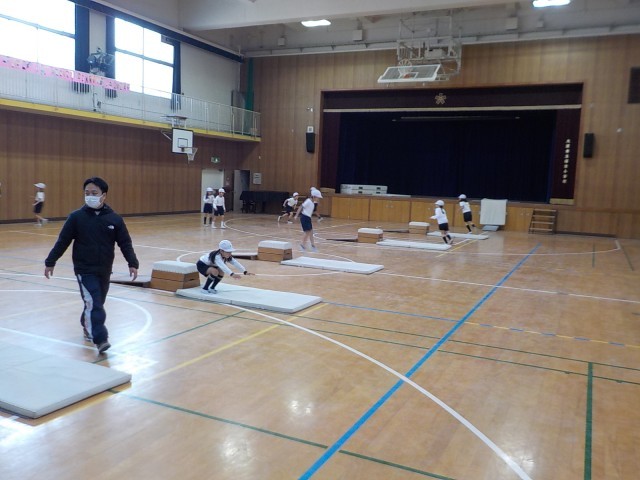初めての跳び箱の学習なので、跳び箱の準備の仕方、片づけ方などは安全に気を付けながら、