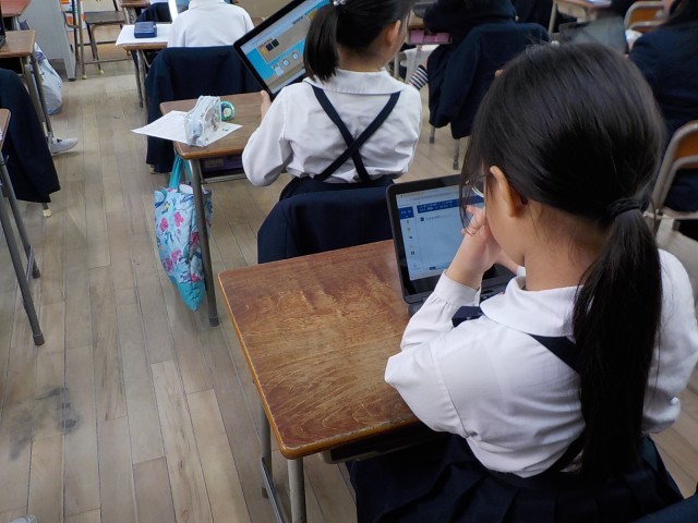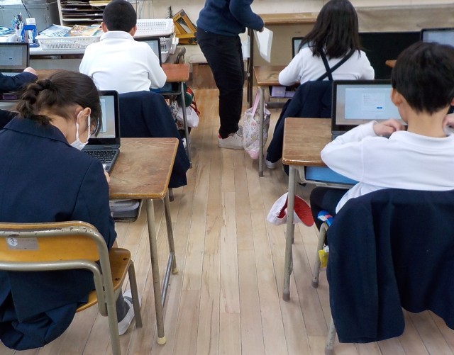 3年生は本日、新しい学習者端末の初期設定を行いました。起動が早かったり、液晶が綺麗だったりと驚くことばかり!新しい学習者端末を使ってこれからもたくさん勉強していきましょうね。明日充電を忘れず持ってきてくださいね。