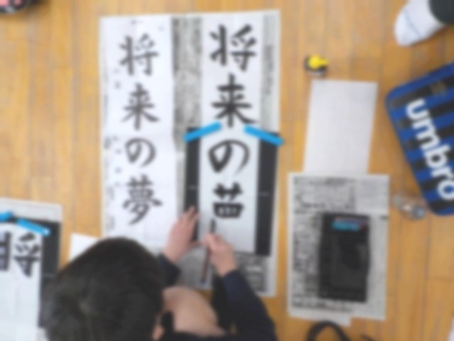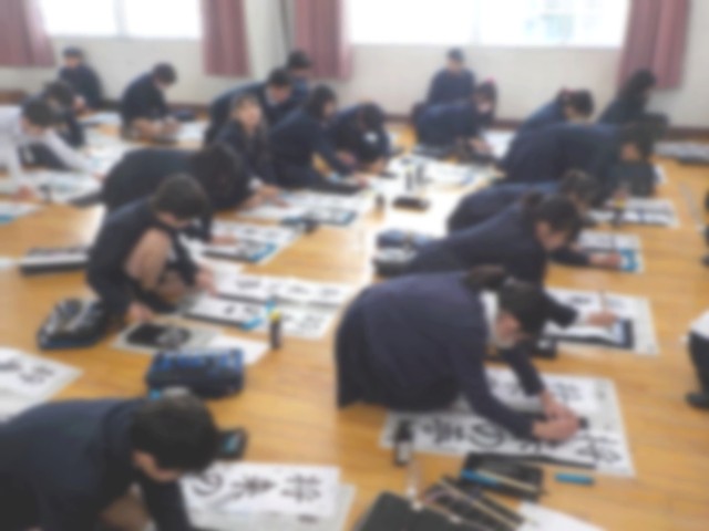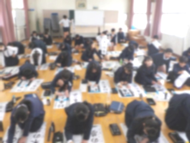 今日は学年みんなでそろって書初めをしました。
