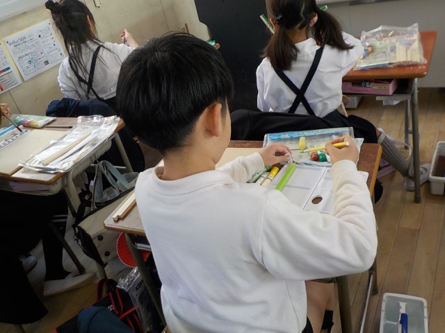 3年生は図画工作科でくぎ打ちゲームをつくっています。今はゲームの絵を描いています。1組さんは今週後半に行う予定です。楽しそうにしておいてくださいね!