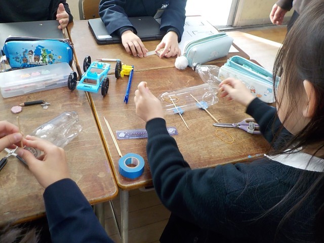 3年生の理科ではこれまで学習したことのまとめとして「おもちゃランド」の制作をしています。班ごとにお店を作り学年で交流予定です。準備をみんなで力を合わせて頑張っています!