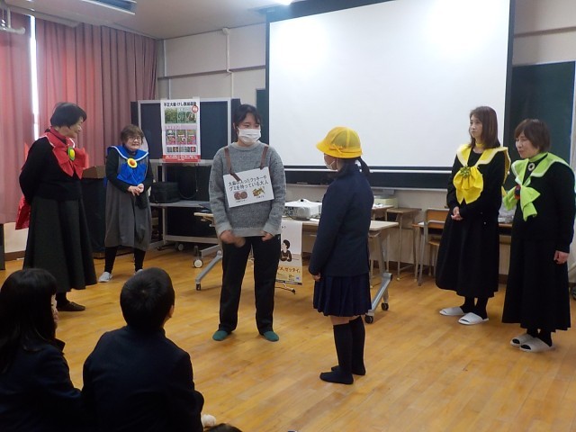 今日は都島区更生保護女性会のみなさんに「薬物乱用防止教室」を行っていただきました。薬物は自分たちの体を傷つける危険な物ということや、勧められた場合は絶対に断ることを教えていただきました。ロールプレイングでは、実際に勧められた時にどのように対応するのかを実践することで、危ない状況にあっても断ったり逃げたりすることの重要さを学びました。子どもたちは今まで薬物についてよく知らなかったけど、今日の学習で理解することができたと話していました。今日学んだ内容を今後の生活に生かしていきたいと思います。更生保護女性会のみなさん、本日は本当にありがとうございました。