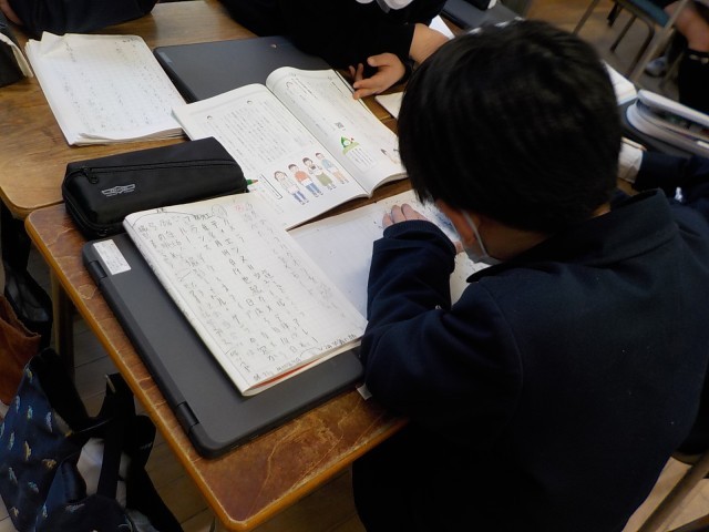 3年生は国語科の時間に道具の移り変わりを調べ、まとめる学習をしています。タブレット端末や本を使い調べ、自分なりの意見を加えていきます。いいものができてきています!