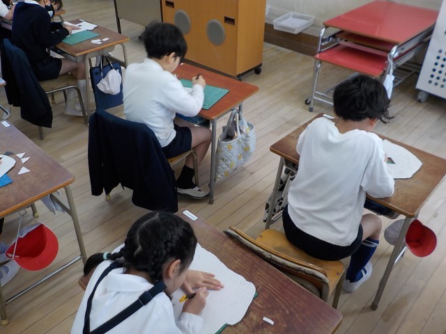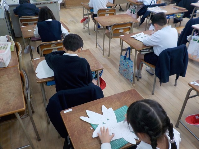図画工作科の学習では、カッターを使った作品に取り組んでいます。