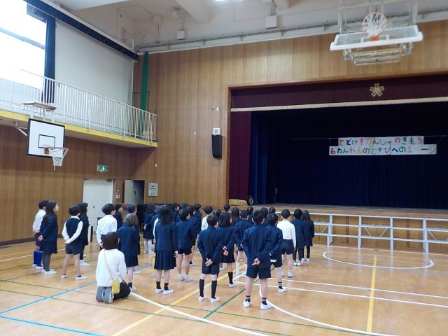 明日の卒業おめでとう集会に向けて、最後の練習を講堂でしました。