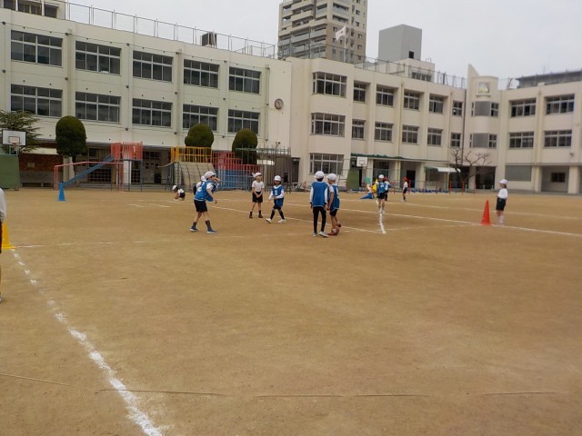 ラインサッカーの学習が始まりました。止める、蹴るといった基本を練習後今日はゲームを行いました。はじめてのゲームでしたがとても盛り上がりました。誰もが点を取ることができる単元です。みんなで力を合わせて頑張っていましょう!