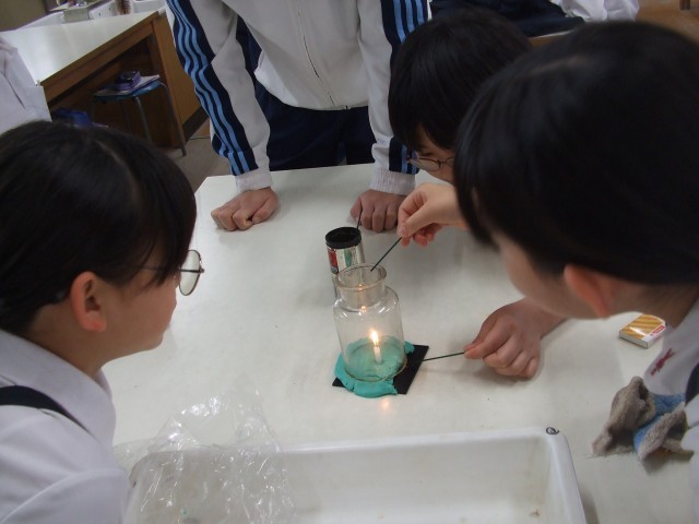 火を使う実験ということもあり、子どもたちは真剣に先生の指示を聞いて、良い緊張感の中興味深く学習していました。
