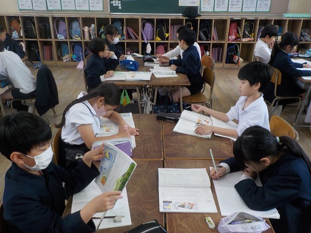学習参観で行う音楽発表会に向けて、グループ活動を行いました。登場人物の様子や気持ちが伝わるための音読を考えたり、グループで音読の練習に取り組んだりしました。明日の学習参観は、工夫した点が聞いている人に伝わるように、頑張っていきたいですね。
