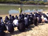 本日午前10時すぎ、5年生が6月から教室で育ててきたモツゴを、1人一匹ずつ、大川...