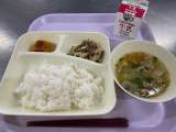 12月21日(月) 今日の献立は、・豚肉と干しずいきのみそ煮・すまし汁・焼き...