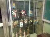 玄関にショーケースを設置しました。サッカーやミニバスケットボールクラブ、絵画展...