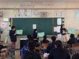 桜宮中学校の英語の先生に来ていただいて、5年生が出前授業として「外国語活動」を...