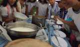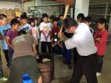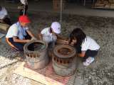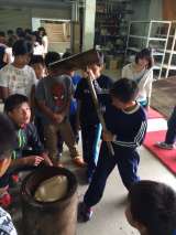 3日目の午前プログラムは、餅つきです。 餅つき開始!!みんな、力いっぱい杵で...