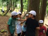 林間最後の活動、高原散策がただいま終わりました!聴診器を使って木の幹の中の水が...