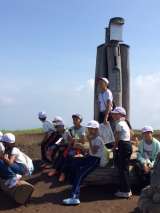 山頂到着!かなり急な斜面にひと苦労でしたが、「もう少しや。」「がんばれ!」と班...