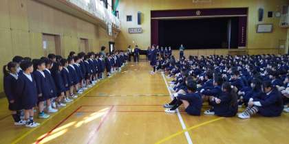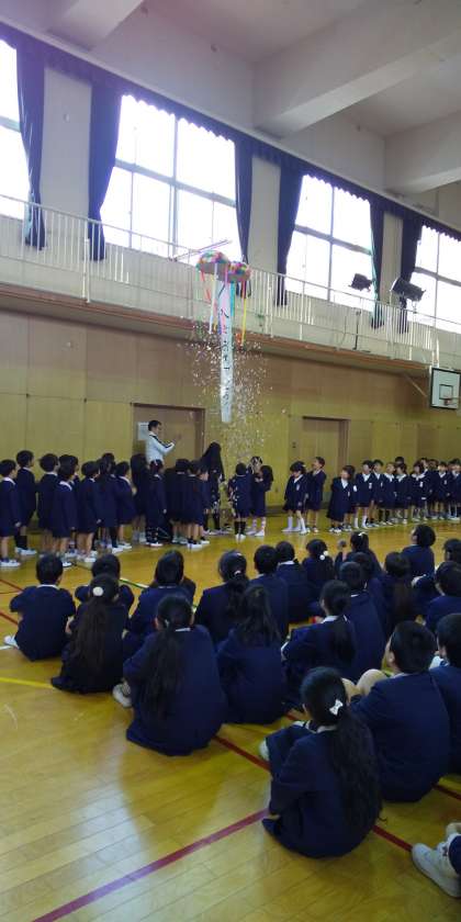 1年生は、2年生から6年生のお兄さんお姉さんとの顔合わせです。「よろしくお願いします」と大きな声でしっかりと言えました。