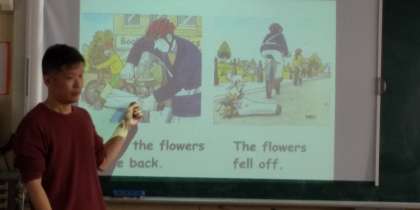 2年生2組で英語の絵本を読みました。先生のジェスチャーや挿絵をヒントに英語を聞いてお話がだいたい理解できたようです。イングリッシュタイムを利用していろいろな形で英語学習に全学年で取り組んでいきます。