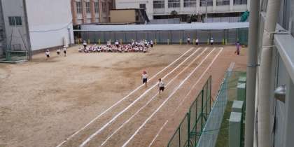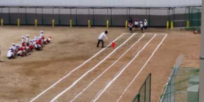 初めてのスポーツテスト1年生もコーンまで力いっぱい走りました。