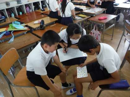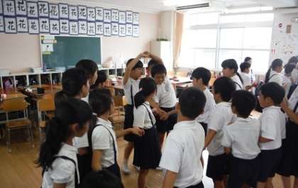 6月6日6時間目、教室できずな集会をしました。初めて同じクラスになった人、5年1組のクラスメイトになってまだ1回もしゃべったことがない人がいるということで、早くみんなと仲良くなりたいという思いから、学級活動で、きずな集会を計画しました。全員で役割分担をして準備をし、当日を迎えました。パプリカを全員で歌い、友だちのことを当てるゲームと人間知恵の輪をしました。