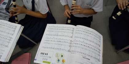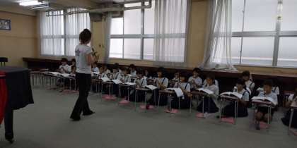 リコーダーで「茶色のこびん」を演奏しました。高い方のミの音がきれいに出るように吹き方を練習しました。「ミソソソ ファラララ シシラシドレミ」今にも聞こえてきそうですね。