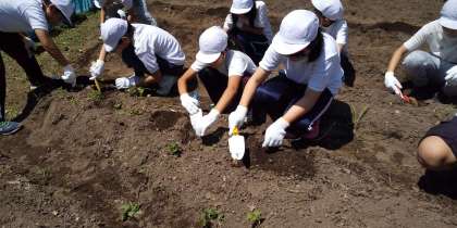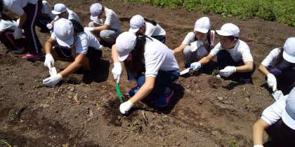 農園でじゃがいも掘りです。小さいのも大きいのも掘れて大喜びです。