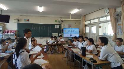 話し合いの中で「相手の論に対して説得力がありました」とエールを送る場面もあり、意見を戦わせながらも相手のよさを認めている討論ができました。