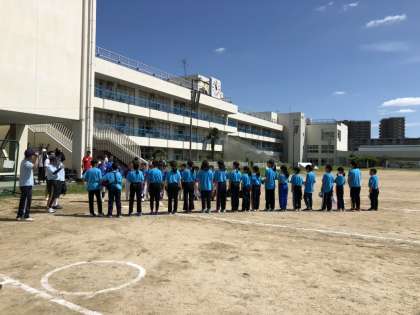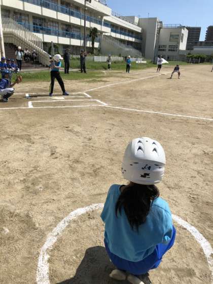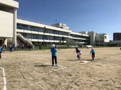 第1試合は、常盤小学校と2試合目は、大成小学校と対戦しました。どちらも敗れましたが、光るプレーヤベンチからの応援とみんなよく頑張りました。ただただ広い運動場に驚き、相手のヒットでたくさん球を追いかけて走った人もいました。